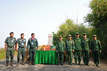 Đồn biên phòng Phước Thiện tặng quà cho bộ đội nước Campuchia