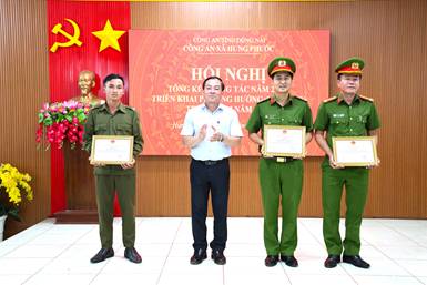 Chiều ngày 08/01, Công an xã Hưng Phước tổ chức hội nghị tổng kết công tác năm 2025 và triển khai phương hướng, nhiệm vụ năm 2026. Dự hội nghị có đồng chí Trịnh Tiến Tâm, Bí thư Đảng ủy, Chủ tịch HĐND xã. Đồng chí Điểu Huỳnh Sơn, Trưởng Công an xã chủ trì hội nghị, cùng đại diện lãnh đạo các ban, ngành liên quan.