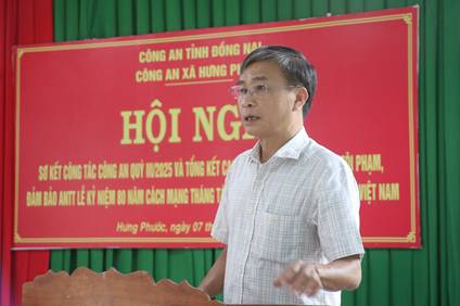 Phát biểu tại Hội nghị, đồng chí Nguyễn Công Danh ghi nhận và đánh giá cao những thành tích mà Công an xã đã đạt được trong Quý III, góp phần giữ vững ổn định chính trị, trật tự an toàn xã hội, tạo tiền đề vững chắc cho sự phát triển kinh tế – xã hội của xã Hưng Phước.