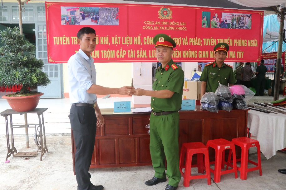 Tại ngày hội, lực lượng công an địa phương đã đẩy mạnh tuyên truyền và vận động nhân dân tự giác giao nộp vũ khí, vật liệu nổ và công cụ hỗ trợ. Trong buổi lễ người dân đã tự giác giao nộp 12 viên đạn vũ khí quân dụng và nhiều dao kiếm tự chế, cùng nhiều loại vật liệu nổ tự tạo đã được thu hồi. từ đó góp phần ngăn ngừa nguy cơ mất an toàn, giữ gìn sự bình yên cho cộng đồng.