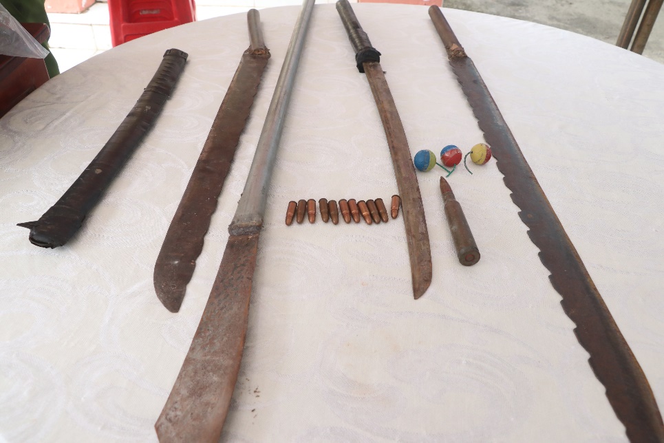 Nhiều viên đạn quân dụng và dao kiếm tự chế, cùng nhiều loại vật liệu nổ tự tạo đã được thu hồi