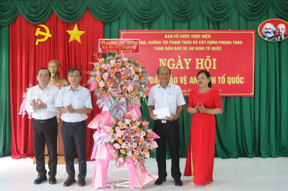 Đến dự ngày hội có đồng chí Trịnh Tiến Tâm - Bí thư Đảng ủy, chủ tịch HĐND xã Hưng Phước, đồng chí chủ tịch UBND xã Nguyễn Công Danh cùng lãnh đạo địa phương và người dân.