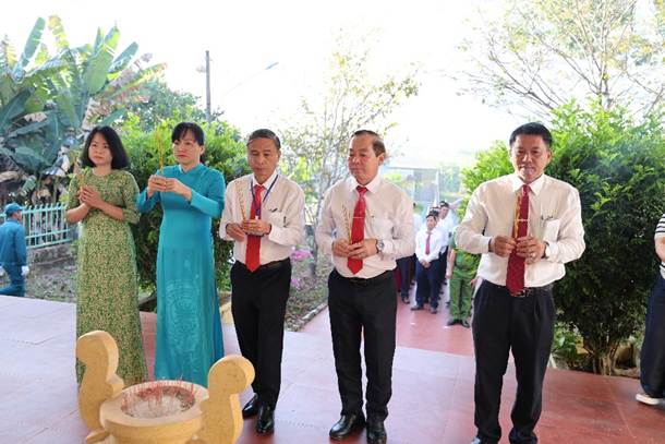 Lãnh đạo Đảng ủy, HĐND, UBND, Ủy ban MTTQ Việt Nam xã Hưng Phước dâng hương tại nhà bia tưởng niệm