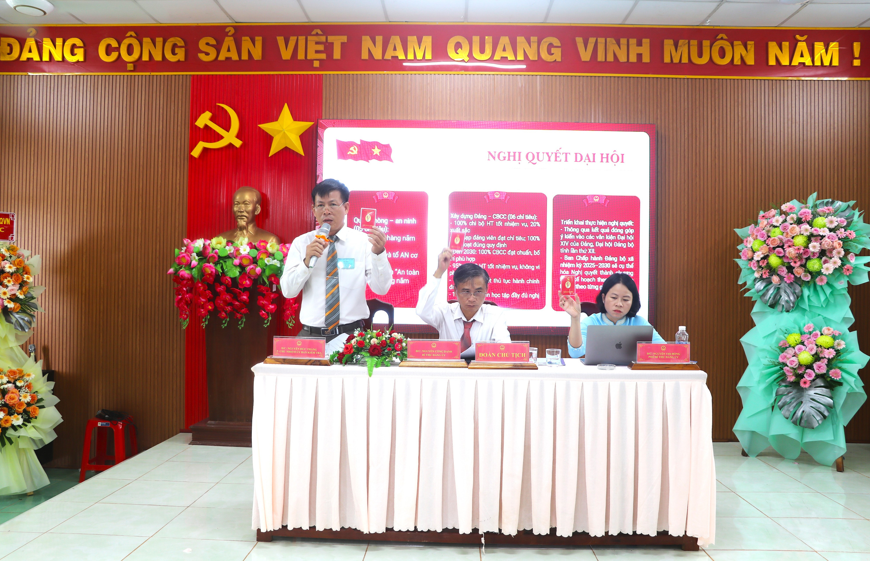 Tại Đại hội, các đại biểu đã thảo luận sôi nổi, thống nhất thông qua Dự thảo Báo cáo chính trị và đóng góp nhiều ý kiến quan trọng vào các văn kiện trình Đại hội Đảng các cấp, thể hiện tinh thần trách nhiệm và trí tuệ tập thể.