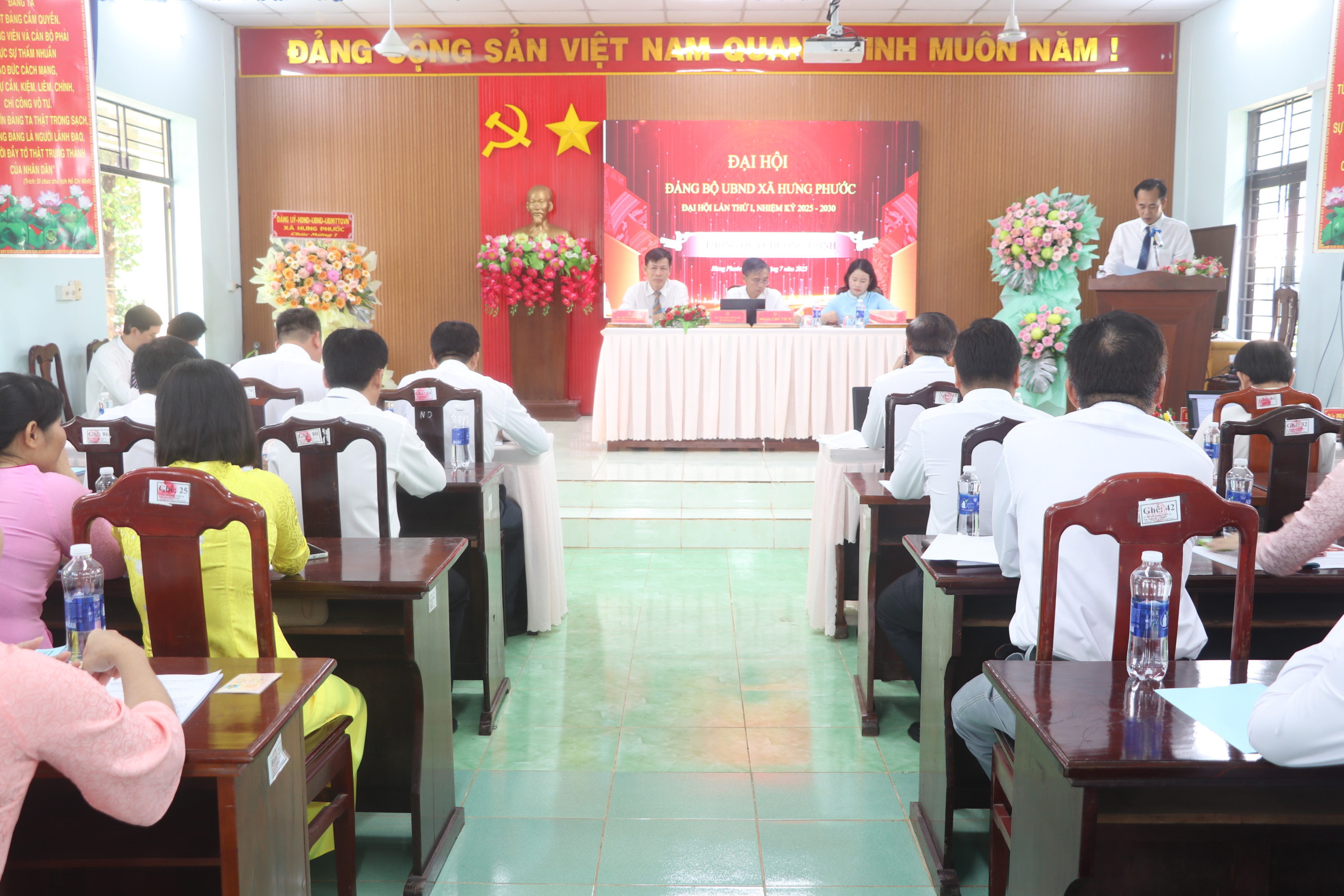 Với 05 chi bộ trực thuộc và tổng số 43 đảng viên, Đảng bộ UBND xã Hưng Phước đặt ra chủ đề “Xây dựng Đảng bộ trong sạch, vững mạnh; phát huy tinh thần đoàn kết, đổi mới, kỷ cương; nâng cao hiệu lực quản lý, phục vụ nhân dân, phát triển địa phương bền vững”. Phương châm hành động được Đại hội thống nhất là “Đoàn kết - Dân chủ - Kỷ cương – Sáng tạo - Phát triển”.