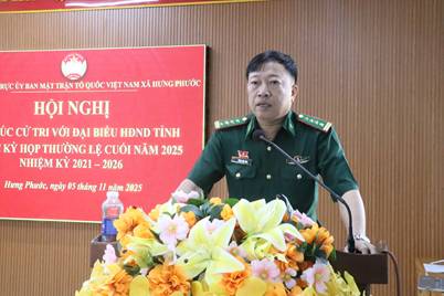 Ngày 05/11, Đại tá Phan Văn Hóa – Phó Chỉ huy trưởng Bộ đội Biên phòng (BĐBP) tỉnh, Đại biểu Hội đồng nhân dân (HĐND) tỉnh khóa X, đã có buổi tiếp xúc cử tri xã Hưng Phước.