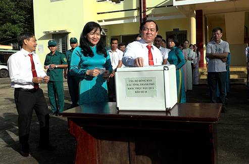 Lãnh đạo Đảng ủy, HĐND, UBND, UBMTTQ Việt Nam xã cùng toàn thể cán bộ công chức viên chức ủng hộ đồng bào miền trung bị ảnh hưởng bão số 10