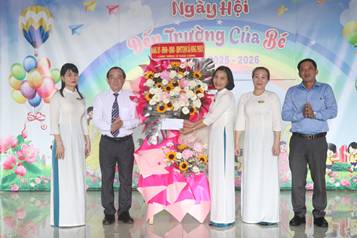 Bí thư Đảng ủy xã tặng hoa chúc mừng tại trường mẫu giáo Hưng Phước