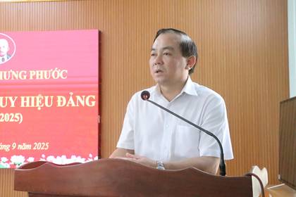 Đồng chí  Trịnh Tiến Tâm - Bí thư Đảng phát biểu chúc mừng các đồng chí nhận huy hiệu 30 năm tuổi Đảng