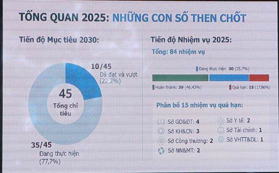 Báo cáo sơ kết năm 2025 cho thấy tỉnh đã ban hành 45 văn bản để triển khai các nhiệm vụ. 39/84 nhiệm vụ trọng tâm có thời hạn trong năm 2025 đã hoàn thành (đạt 46,43%). Chỉ số đổi mới sáng tạo (PII) của tỉnh đạt hạng 12/34 tỉnh, thành phố. Tỉnh cũng tổ chức thành công Techfest Đồng Nai 2025 với 200 gian hàng.