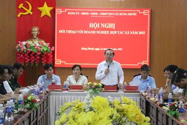 Ngày 24/10, Đảng ủy, HĐND-UBND-UBMTTQVN xã Hưng Phước tổ chức buổi đối thoại với các doanh nghiệp, hợp tác xã (HTX) trên địa bàn năm 2025.