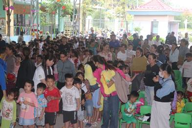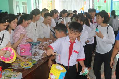Tổng cộng 1.400 phần quà đã được trao tận tay các em học sinh mẫu giáo và học sinh Tiểu học – THCS trên địa bàn xã. Mỗi phần quà bao gồm lồng đèn, sữa, tập sách và một phần suất ăn.