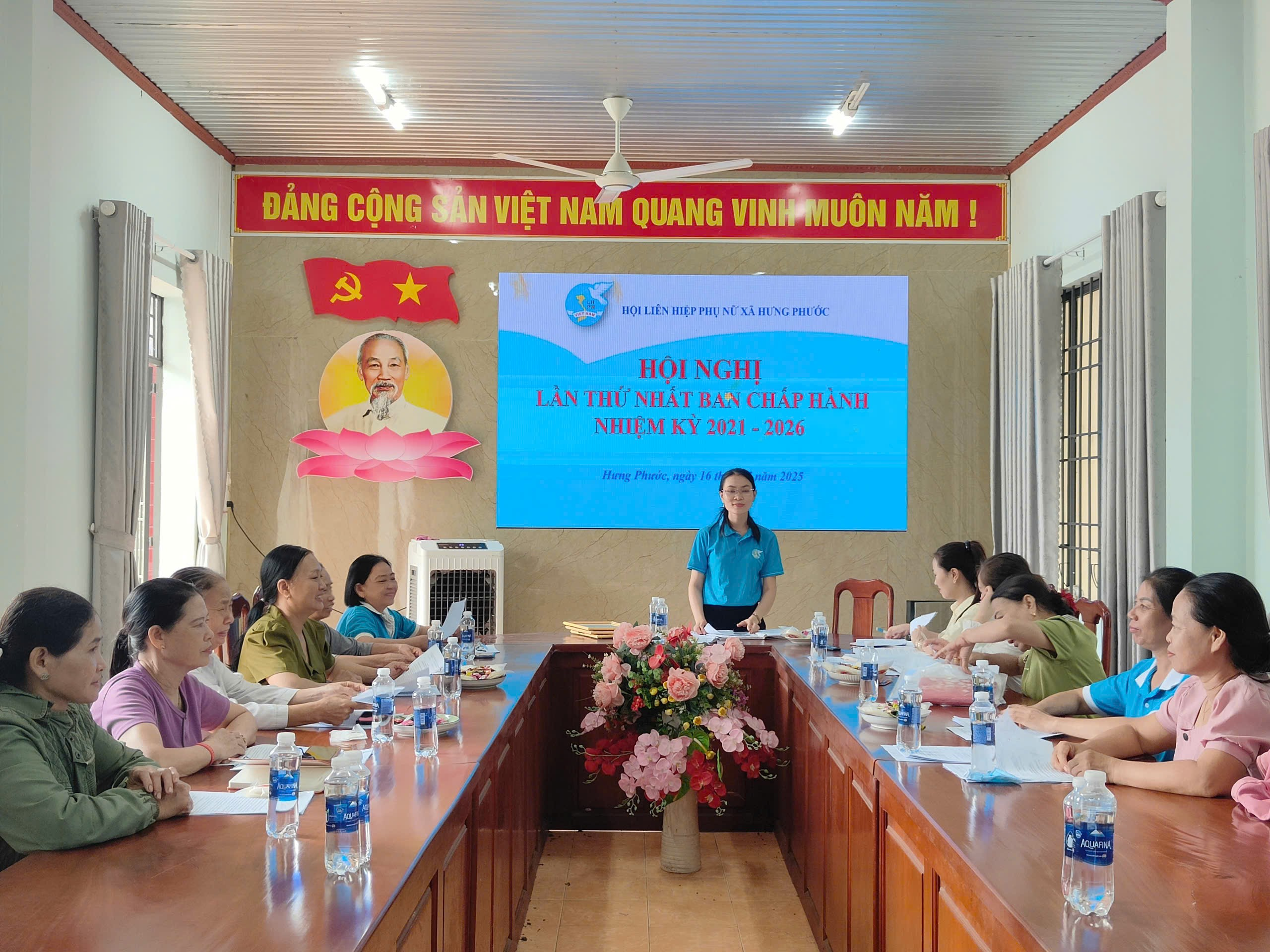 Chiều ngày 15/7/2025, Hội Liên hiệp Phụ nữ (LHPN) xã Hưng Phước, tỉnh Đồng Nai tổ chức cuộc họp ban chấp hành (BCH) lần thứ nhất, nhiệm kỳ 2021–2026 sau khi sáp nhập các xã theo quy định.