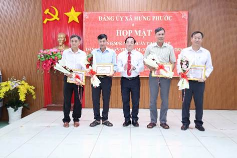 Dịp này, Đảng ủy xã Hưng Phước đã trao giấy khen cho 04 tập thể và 19 cá nhân có thành tích xuất sắc trong công tác xây dựng Đảng và thực hiện nhiệm vụ chính trị của địa phương năm 2025.