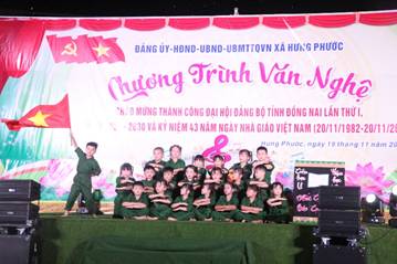 Tối ngày 19/11, tại Trung tâm Văn hóa xã, xã Hưng Phước đã tổ chức thành công Chương trình Văn nghệ đặc sắc với chủ đề “Sắt Son Niềm Tin Theo Đảng - Tri Ân Người Gieo Hạt Giống Tương Lai”.