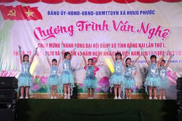 Chương trình Văn nghệ không chỉ tạo không khí vui tươi, phấn khởi trong Nhân dân mà còn là đợt sinh hoạt chính trị, văn hóa sâu rộng, củng cố niềm tin và sự đoàn kết, đồng lòng của Đảng bộ và Nhân dân xã Hưng Phước trong việc thực hiện thắng lợi các Nghị quyết của Đảng đã đề ra.
